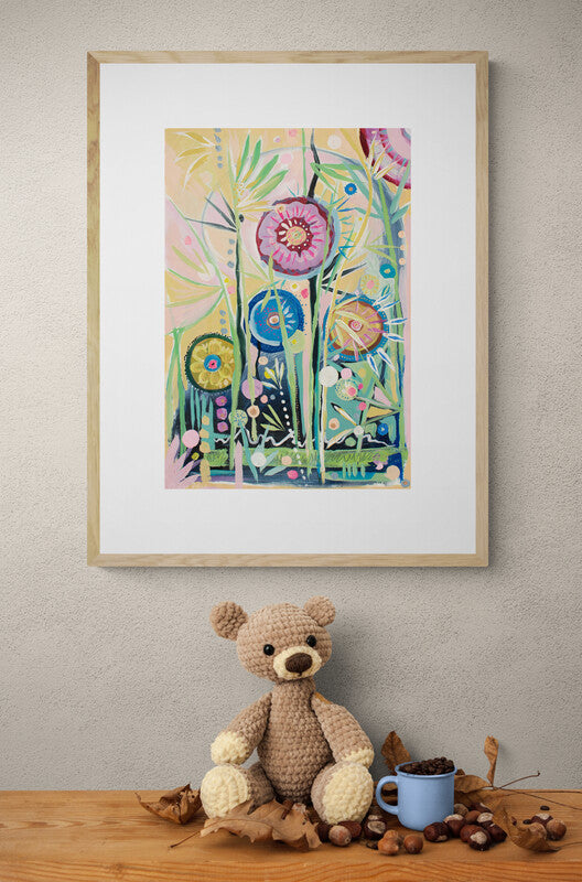 Original acrylic painting on multimedia paper mounted to backing board. Finished with clear gloss varnish for protection. Signed and comes with Certificate of Authenticity. *matting and frames is not included