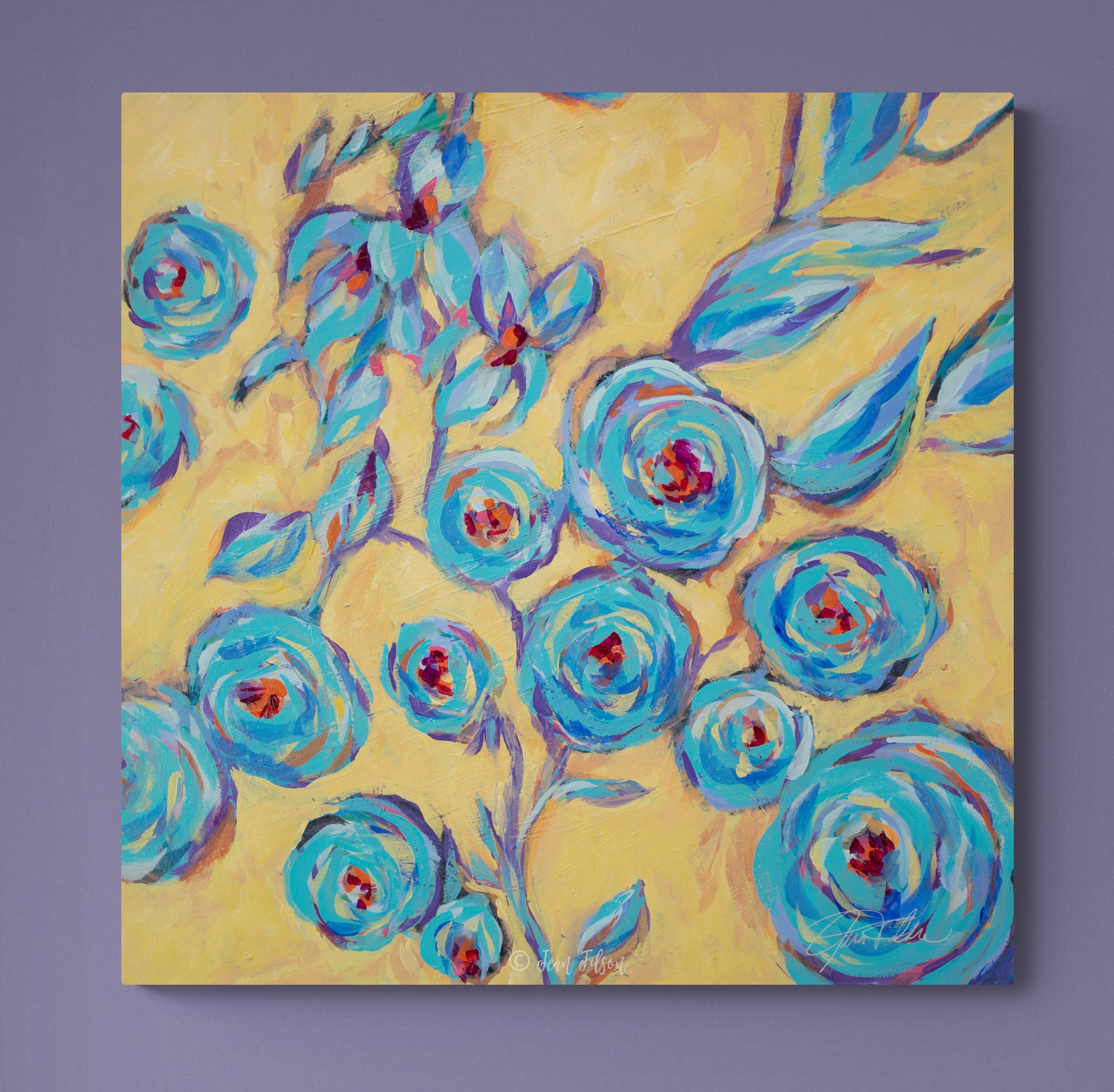 Original abstract paintings for sale-Original Abstract Art-Abstract painting-Abstract floral-Acrylic on canvas-original artwork by-Jean Doremus Filson-Original abstract painting for sale-Original Painting on canvas-Abstract art by Jean Doremus Filson-wall art-colorful-yellow-blue-teal-purple-flowers